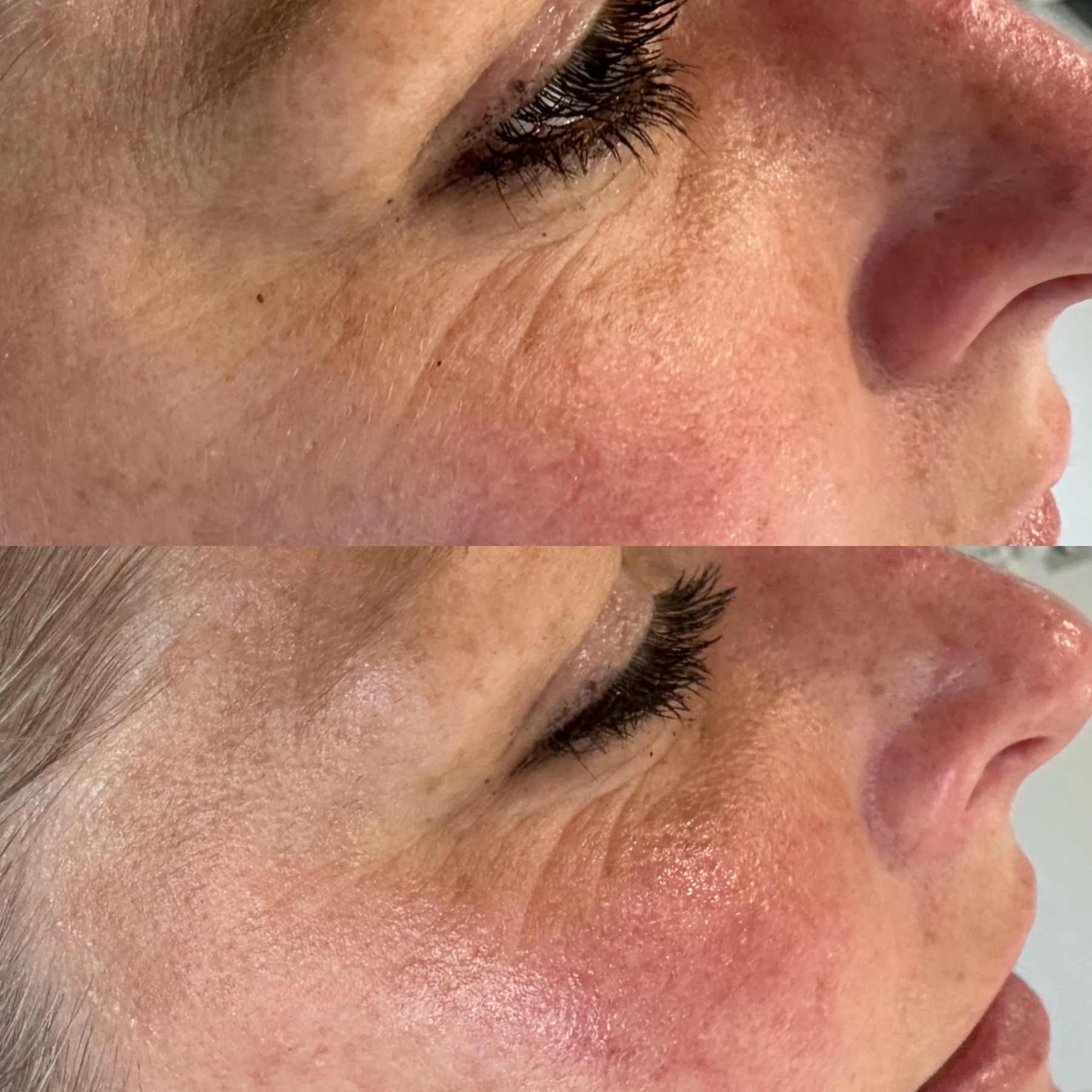 Discomfort is minimal. We use numbing cream and a meso gun for precision and comfort.How long does it last? "The 'glass skin' effect typically lasts 2–3 months. It’s the perfect quarterly maintenance treatment.